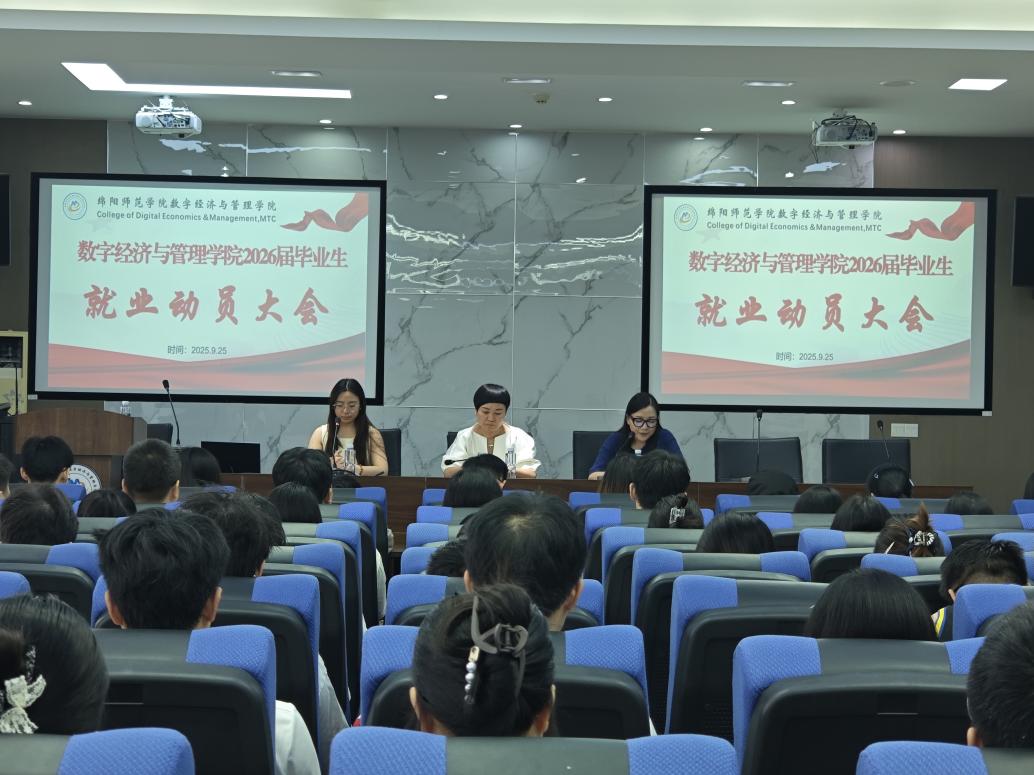 金秋送爽,丹桂飘香。为帮助2026届毕业生认清就业形势、明确职业方向、增强就业信心,2025年9月25日,数字经济与管理学院在厚德楼A415召开2026届毕业生就业动员大会。学院2026届毕业生就业领导小组成员以及在校毕业生代表参加会议。