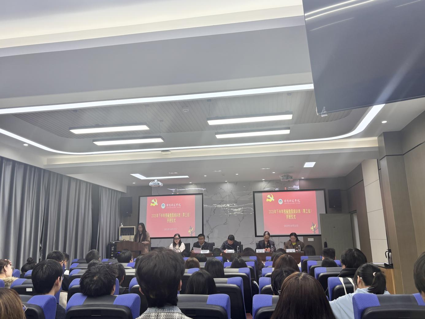 为深入学习贯彻习近平新时代中国特色社会主义思想和党的二十大及二十届三中全会精神,贯彻落实全国教育大会精神,进一步加强党的组织建设,培育年轻后备力量。2025年10月22日晚,由数字经济与管理学院党委牵头举办的2025年下半年预备党员培训班(第三组)正式开班,并成功举行了首次培训。来自数字经济与管理学院、音乐与舞蹈学院、美术与设计学院、传媒学院、地理与环境学院、人居环境学院(高新)的党委副书记、学生支部书记,以及参培预备党员共同参加了本次活动。