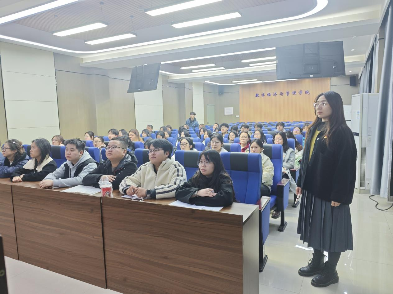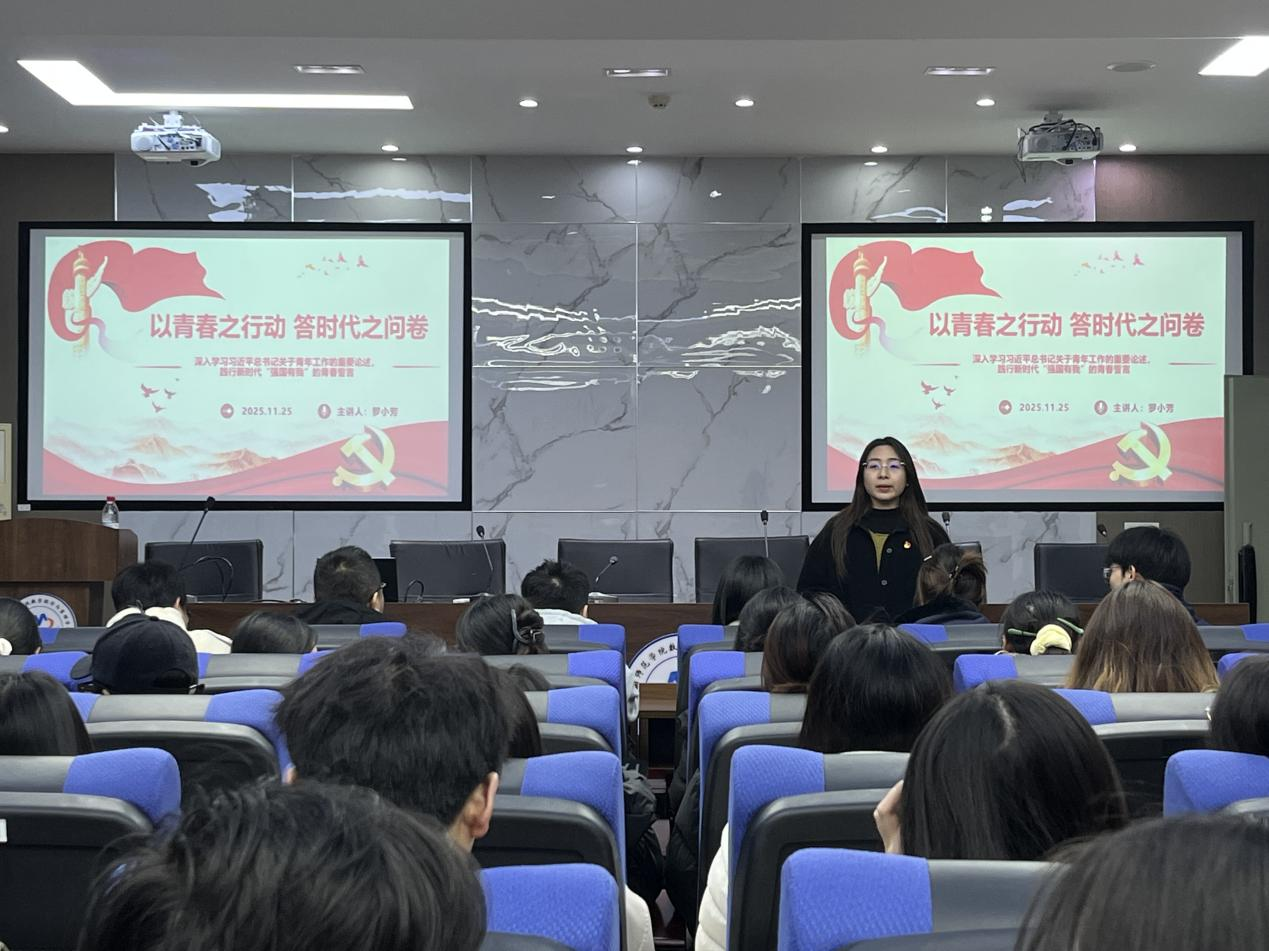 11月25日,数字经济与管理学院学生第二党支部书记罗小芳主讲《以青春之行动 答时代之问卷》主题党课。学院全体学生党员、预备党员及发展对象参加学习。