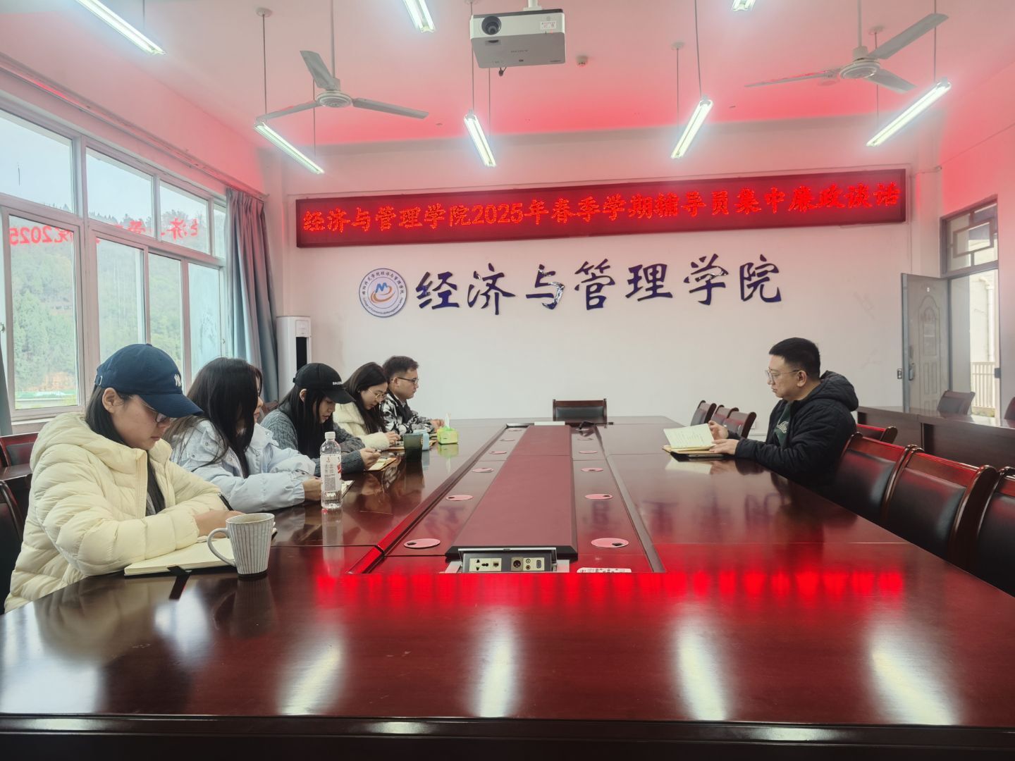此次集中廉政谈话既是学院落实全面从严治党要求的具体举措,也是师德师风建设的重要抓手,为春季学期学生工作高质量开展筑牢了廉洁根基。经济与管理学院将持续深化廉政风险防控体系建设,通过常态化警示教育、谈心谈话等机制,营造风清气正的育人环境,为学校清廉校园创建贡献力量。