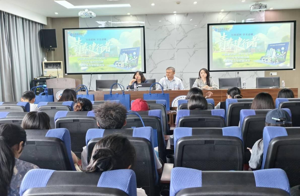 为拓宽我院毕业生就业渠道,深化校企合作,助力青年学子实现职业理想,9月24日下午,数字经济与管理学院成功举办中国建设银行四川省分行2026年度校园招聘宣讲会。